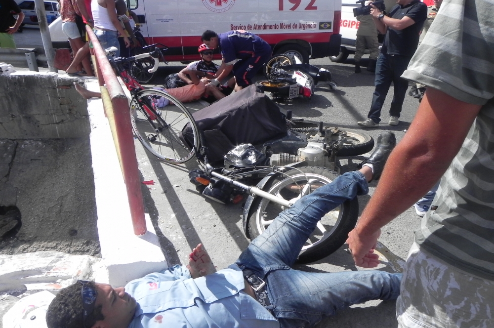 Já o motoqueiro Cosme Santos Silva, que trafegava em uma Biz de placa IAG 1997/ Nossa Senhora do Socorro-Se, que segundo testemunhas no local, teria avançado o sinal vermelho, gritava muito alegando fortes dores na perna e no braço direito.