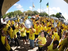 A categoria realizou um 'panelaço' na porta da Assembleia