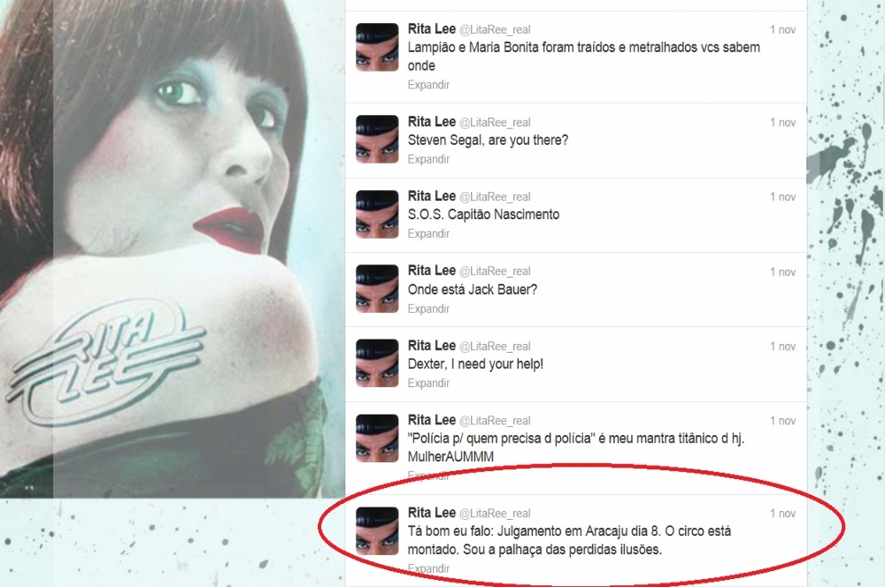 Foi por meio da rede social que a cantora Rita Lee anunciou que supostamente estará de volta a capital sergipana. Rita postou que será julgada no dia 8 desse mês. Ao completar a frase a artista disse que o circo está montado. “Sou a palhaça das perdidas ilusões. ‘Polícia p/ quem precisa d polícia’, é meu mantra titânico d hj”, escreveu a cantora.